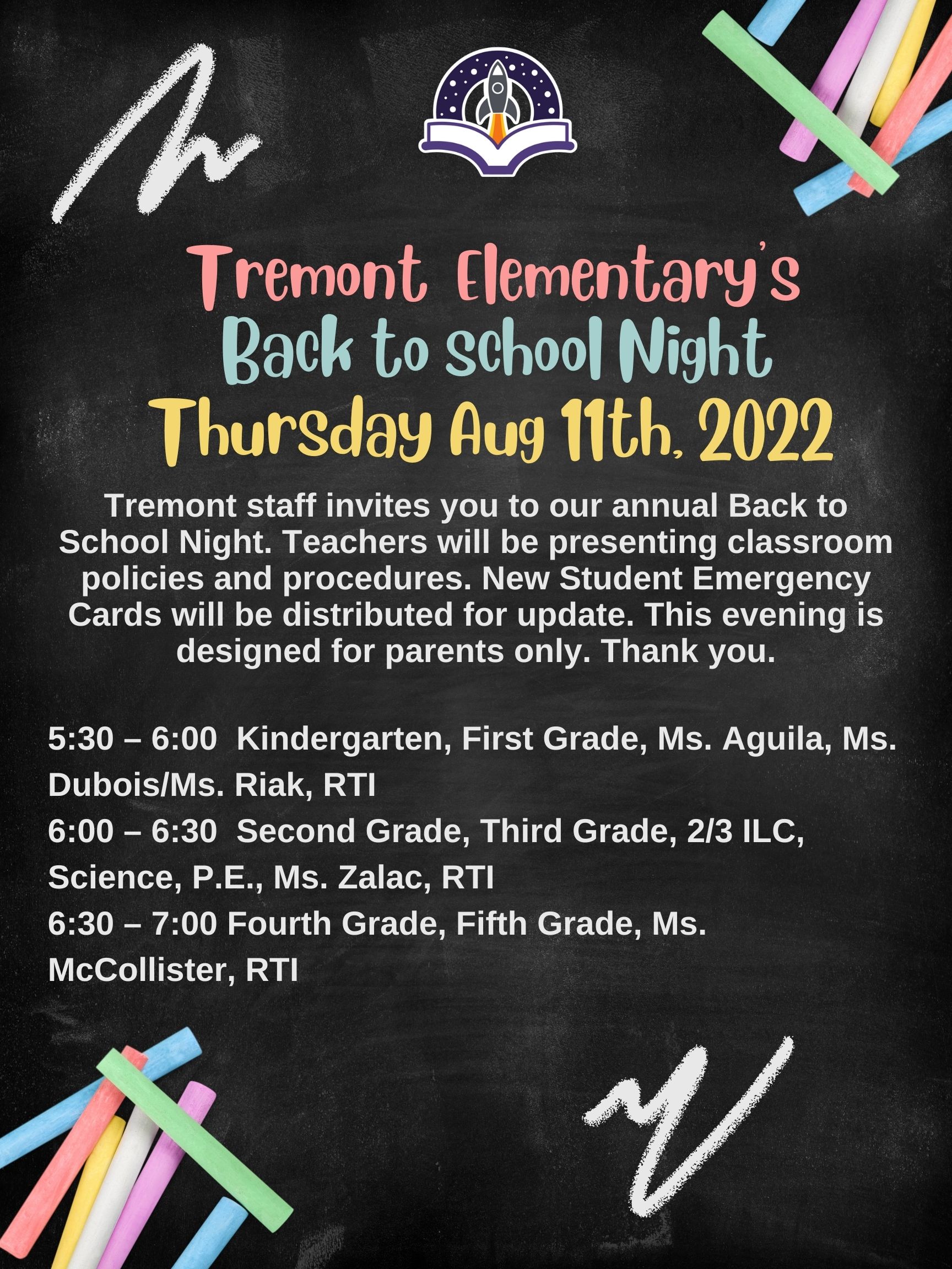 Back to School Night / Noche de regreso a la escuela
